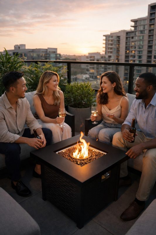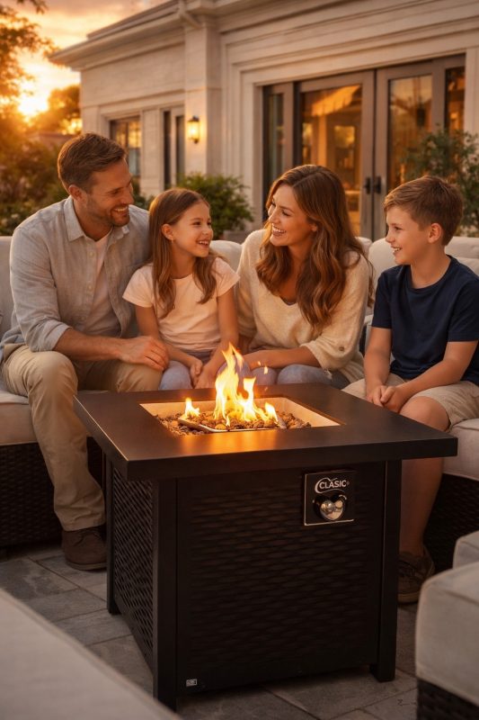 El calor se distribuye de forma confortable y envolvente, permitiendo disfrutar del exterior incluso cuando la temperatura desciende. La experiencia es limpia y práctica, pensada para acompañar largas conversaciones, reuniones especiales o instantes de descanso al final del día.