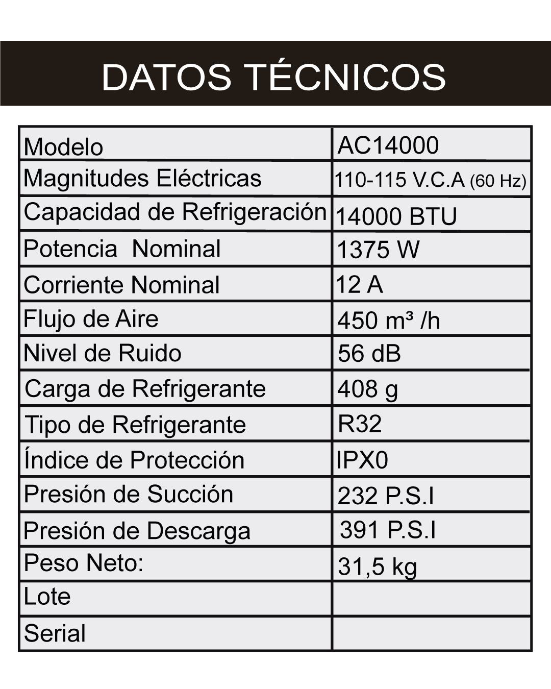 • Potencia de 14.000 BTU para una climatización eficiente.